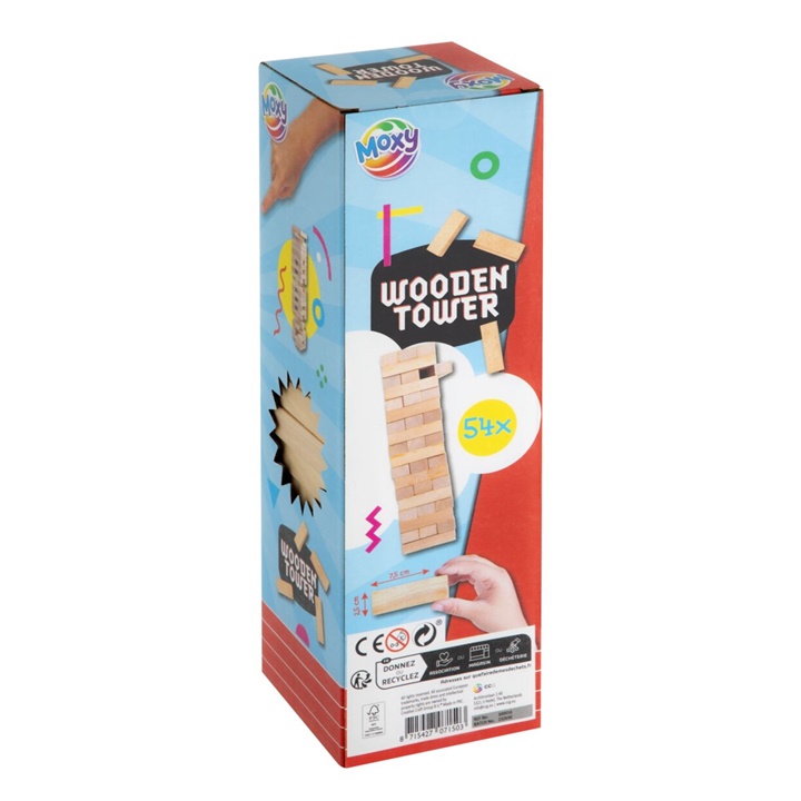 Drevená hra veža 54 ks je klasická stolná hra pre celú rodinu, ktorá preverí trpezlivosť, zručnosť astrateško mišljenje. Hráči postupne vyťahujú drevené kvádre zo spodnej časti veže a ukladajú ich na vrch, pričom sa snažia, aby sa veža nezrútila. Hra Jenga je skvelá na rozvoj jemnej motoriky , koncentrácie a tímovej spolupráce. Vhodná pre 2 do 6 hráčov, idealna na rodinné večery, oslavy alibo ako zábava s priateľmi. Skup sadrži 54 precízne opracovaných drevených blokova, koji su sigurni na dotyk i majú dlhú životnosť. Jednoduché pravidlá a nekonečná zábava robia z tejto hry perfektný darček pre deti aj dospelých. Ulaz od 4 roka.