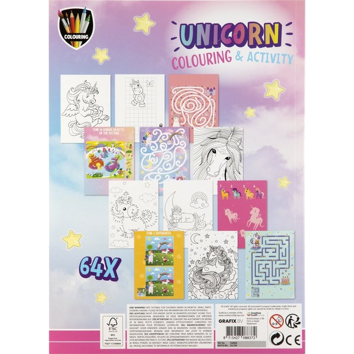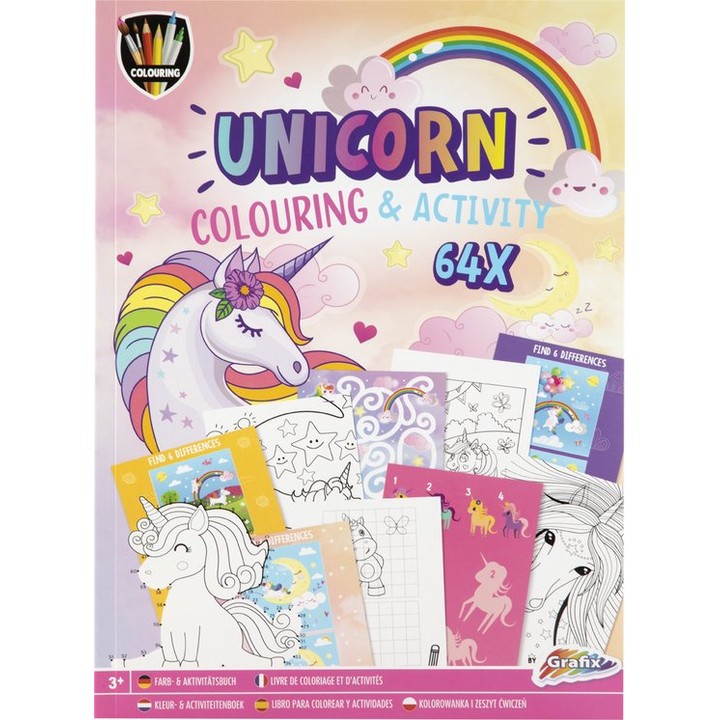 Knjiga za bojanje i aktivnosti s jednorogom A4, 64 stranice, GRAFIX