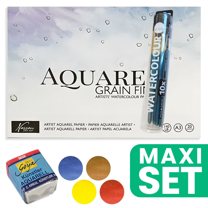 Za sve kreativne entuzijaste, profesionalne umjetnike, studente umjetnosti ili povremene stvaratelje, pripremili smo posebne kombinirane setove koji sadrže sve što vam je potrebno da u potpunosti razvijete svoj umjetnički talent. Naši sniženi setovi pažljivo su sastavljeni od naših najpopularnijih i najkvalitetnijih proizvoda. Bilo da vas zanima slikanje na platnu, tehnika akvarela, crtež ili druge likovne tehnike. U našoj ponudi nalaze se razni setovi koji su idealni kao poklon za vaše najdraže ili kao kompletan početni paket za vas. S ovim setovima možete biti sigurni da koristite proizvode visoke kvalitete koji će vam omogućiti postizanje profesionalnih rezultata. Odaberite iz naše ponude sniženih setova i uronite u svijet kreativnosti uz naše provjerene i popularne proizvode. Inspirirajte se i stvarajte djela na koja ćete biti ponosni! U ovom setu ćete pronaći set akvarelnih kistova Daler Rowney, ARTMIE blok platna za slikanje 10 listova A3, akvarelne boje SOLO GOYA ½ pans nijanse - pariško plava, hookers zelena, sirova umbra, prava limun žuta, trajna svijetlo crvena.