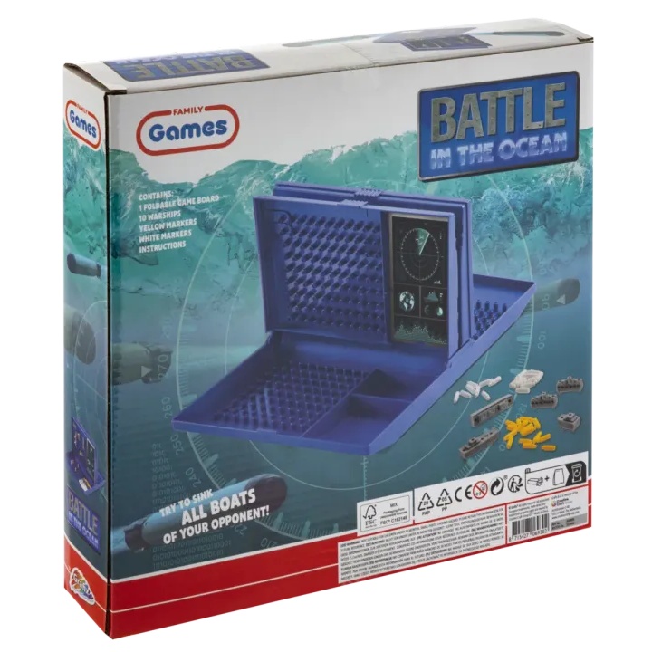Grafix BATTLE IN THE OCEAN donosi klasično uzbuđenje pomorske strategije na vaš stol, nudeći zanimljiv izazov za dva igrača u kojem taktičko razmišljanje i malo sreće odlučuju o pobjedniku; dizajnirana kao igra u stilu sklopivog bojnog broda, omogućuje igračima da tajno rasporede svoju flotu, prate pogotke i promašaje te pokreću ciljana nagađanja kako bi prvi potopili protivničke brodove, što je čini idealnim izborom za obitelji, početnike i sve koji uživaju u brzim, ali strateškim sesijama igranja; s kompaktnim kućištem, detaljnim dijelovima brodova i jasnim dizajnom inspiriranim radarom, igra se lako postavlja, pohranjuje i nosi, savršena za kućne večeri igranja ili zabavu na putovanjima, a istovremeno potiče logiku, pamćenje i prijateljsko natjecanje; pogodna za mlade zapovjednike u dobi od 5 i više godina, Battle in the Ocean obećava pristupačnu, brzu zabavu u svakoj rundi.