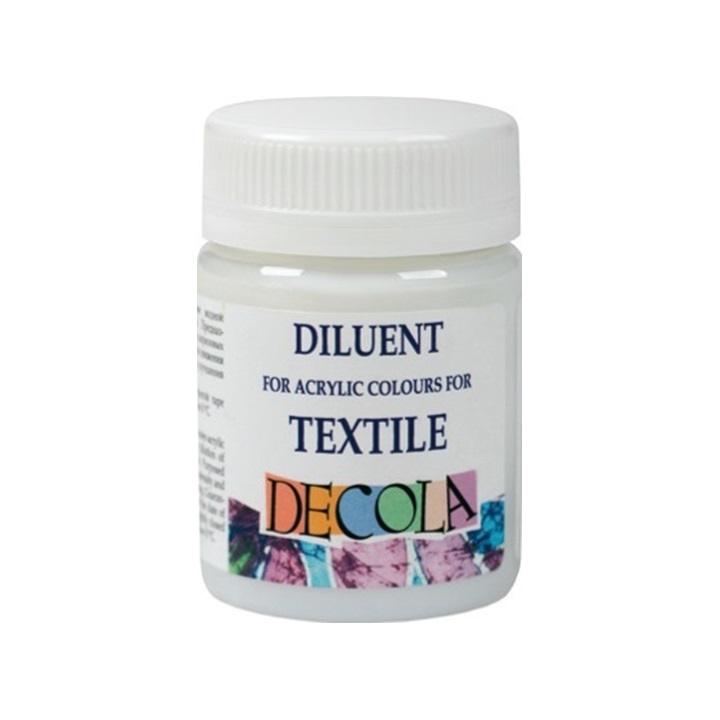 Razrjeđivač iz serije proizvoda Decola napravljen je za razrjeđivanje akrilnih boja za tekstil. da umanji intenzitet boja I olakša aplikaciju. Takodjer. služi I da stvori specijalan efekt akvarela. Kad se doda bojama. povećava njihovu otpornost na pranje.